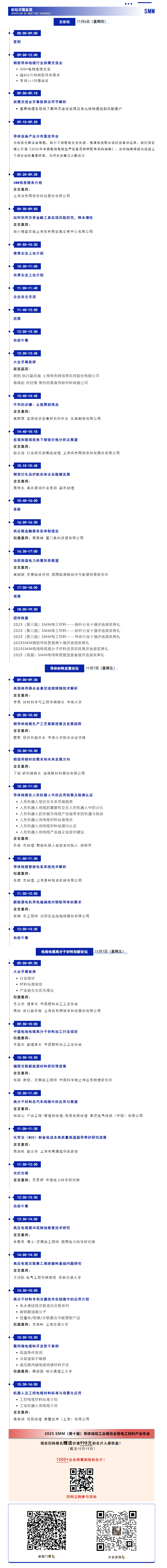 在 11月6日-7日 ,江苏·常州星河万丽酒店,2025 SMM(第十届)导体线缆工业展览会,上,我们特别设置三大论坛主题演讲: