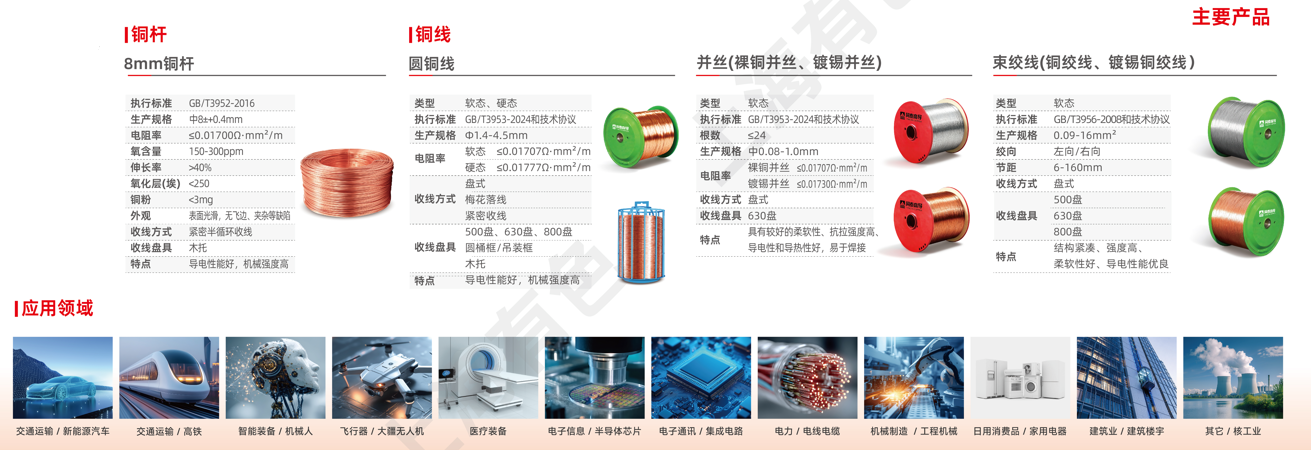 公司拥有年产80万吨铜杆及15万吨铜线的生产能力,产品从基础铜材到高端应用领域,形成完整产业链布局。依托科研院所共建协同创新中心,公司在低氧铜、无氧铜、合金铜等铜材研发上拥有多项核心专利。
